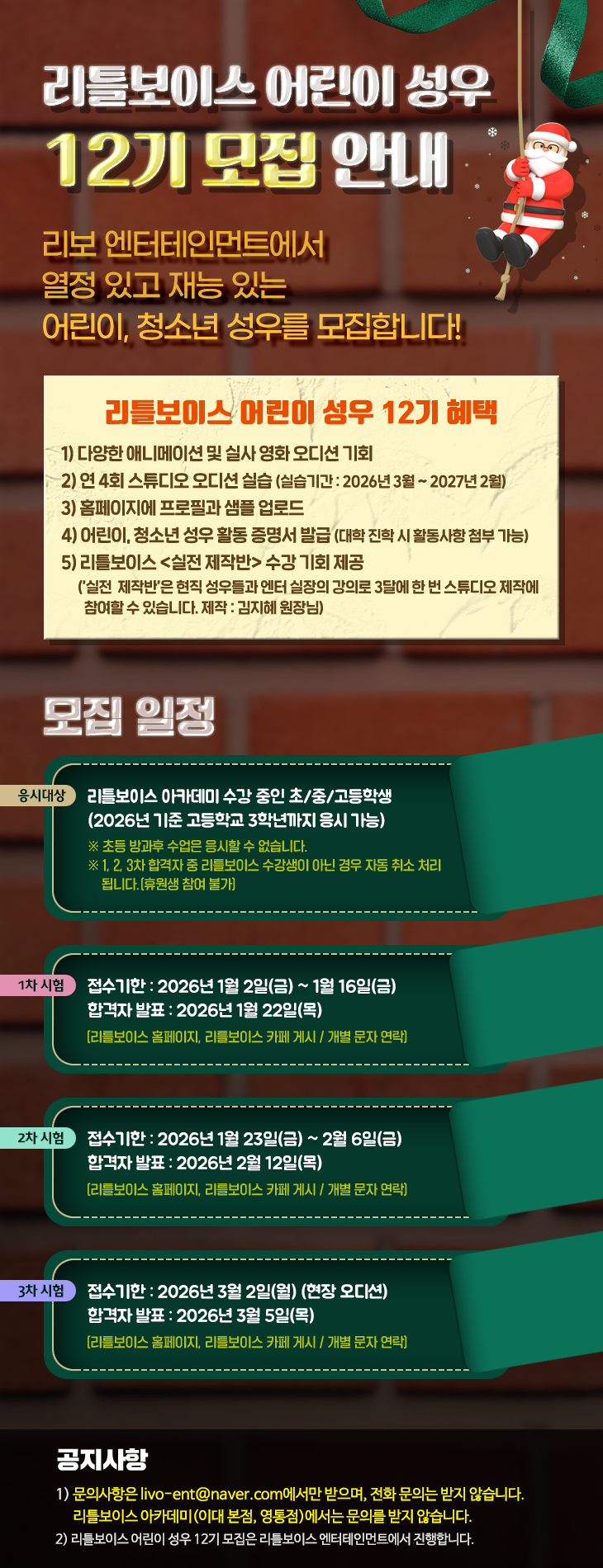 2026년 리틀보이스 어린이 성우 12기 모집 안내
