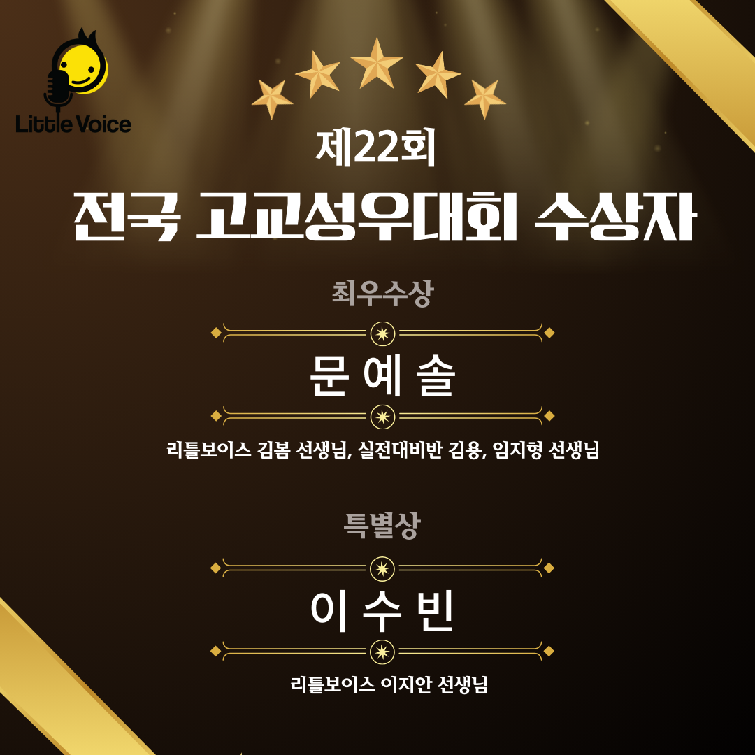 제22회 전국고교성우대회에서 리틀보이스 재학생 친구들이 수상을 하게 되었습니다.